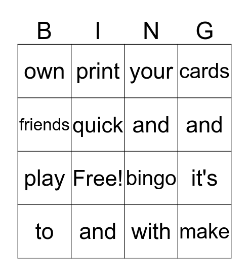 Make your own free custom printable bingo card! Make your own bingo cards with this free, simple app. You can even play online bingo using any computer, phone or tablet. Exclamation (what to shout when you win): With the web app bingo maker, anyone can organize a bingo game like a pro.